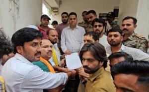 भिण्ड। जिले के सुरपुरा थाना क्षेत्र में दलित युवक को बंधक बनाकर मारपीट करने और शराब पिलाने के आरोपों के बाद सवर्ण समाज खुलकर सामने आ गया है। बुधवार को ब्राह्मण समाज, क्षत्रिय समाज और करणी सेना के प्रतिनिधियों ने मिलकर एडिशनल एसपी संजीव पाठक को ज्ञापन सौंपा। समाज के लोगों का कहना है कि यह पूरा मामला एक सोचा-समझा षड्यंत्र है, जिसमें निर्दोष लोगों को फंसाया गया है। ज्ञापन देने पहुंचे लोगों ने आरोप लगाया कि दलित नेताओं और भीम आर्मी से जुड़े लोगों द्वारा यह मामला फर्जी तरीके से खड़ा किया गया है। उन्होंने कहा कि सुरपुरा निवासी आरोपी और पीड़ित के बीच पहले से ही घरेलू विवाद चल रहा था और दोनों परिवारों के आपसी संबंध पुराने हैं। सवर्ण समाज ने कहा कि अब इस विवाद को जातीय रंग देकर सवर्ण समाज को बदनाम करने की कोशिश की जा रही है। समाज के प्रतिनिधियों ने कहा कि बिना निष्पक्ष जांच के ही पुलिस ने एफआईआर दर्ज कर ली, जिससे कई निर्दोष लोग परेशानी में हैं। उन्होंने बताया कि भीम आर्मी और आजाद समाज पार्टी के कुछ लोगों ने सुरपुरा थाने में दो घंटे तक हंगामा किया और सवर्ण समाज को अपमानित करने वाले नारे लगाए। इसका वीडियो साक्ष्य भी पुलिस को गया है।