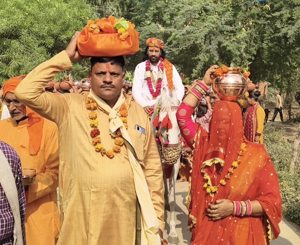 भिण्ड। भव्य एवं पारंपरिक वेश में सोमवार से अटेर विधानसभा अंतर्गत ग्राम गोहदूपुरा में श्रीमद् भागवत कथा का कलश यात्रा के साथ शुभारंभ हुआ। सौरिख जिला कन्नौज उत्तर प्रदेश के स्वामी मुकेशानंद जी महाराज कथा व्यास के नेतृत्व में पारीक्षत श्रीमती वंदना – दीपेंद्र बरुआ ने पोथी अपने सिर पर रखकर कथा आयोजन स्थल से कलशों में पवित्र जल भरने के साथ शुरू हुई कलश यात्रा में बड़ी संख्या में महिला श्रद्धालु शामिल रहीं और गोहदूपुरा और हुलापुरा गाँव के विभिन्न मंदिरों पर परिक्रमा करते हुए पवित्र जलस्त्रोत से कलश को भर कर लाने के बाद कथा आयोजन स्थल पर धार्मिक विधि एवं मंत्रोच्चरण के साथ स्थापित किया गया। आरती के साथ शुरू किए गए श्रीमद् भागवत कथा में कथा व्यास स्वामी मुकेशानंद महाराज ने उपस्थित श्रद्धालुओं को सर्वप्रथम इसकी महिमा से अवगत कराया।